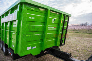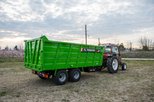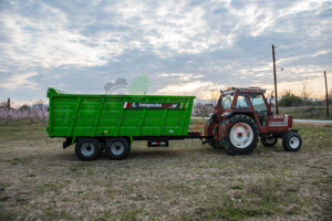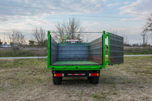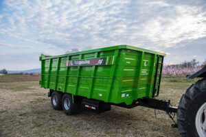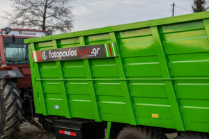 Διαξονική πλατφόρμα μεταφοράς. Κατάλληλη για μεταφορά υγρών στοιχείων. Διαθέτει δύο άξονες, δύο μπουκάλες και ανατροπή. Το συγκεκριμένο μηχάνημα πρόκειται για ειδική παραγγελία.