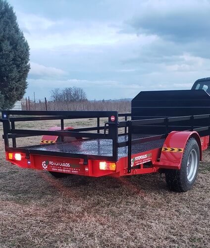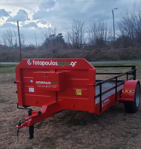 Ρυμούλκα δίτροχη μεταφοράς (4t) χαμηλού ύψους φόρτωσης κατασκευασμένη εξ ολοκλήρου απο την εταιρεία μας Φωτόπουλος Γεωργικά Μηχανήματα, ευέλικτη και αξιόπιστη για τη μεταφορά όλων των αγροτικών σας προϊόντων, φρούτων, λιπασμάτων, ξύλων ακόμα και άλλων γεωργικών μηχανημάτων.