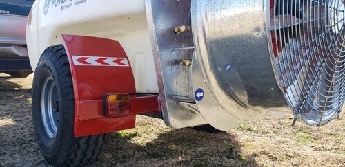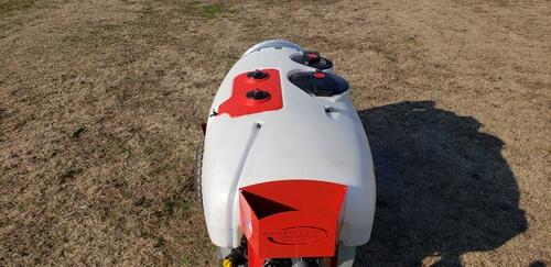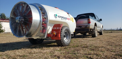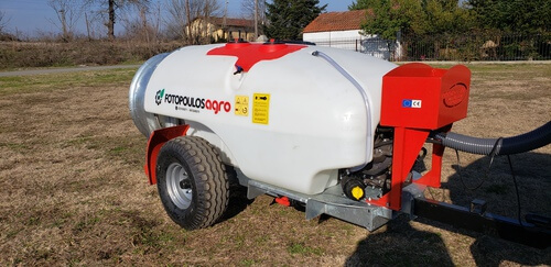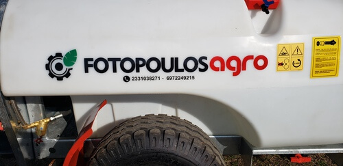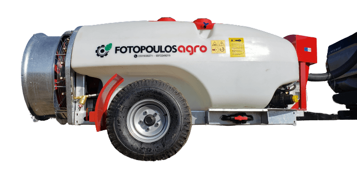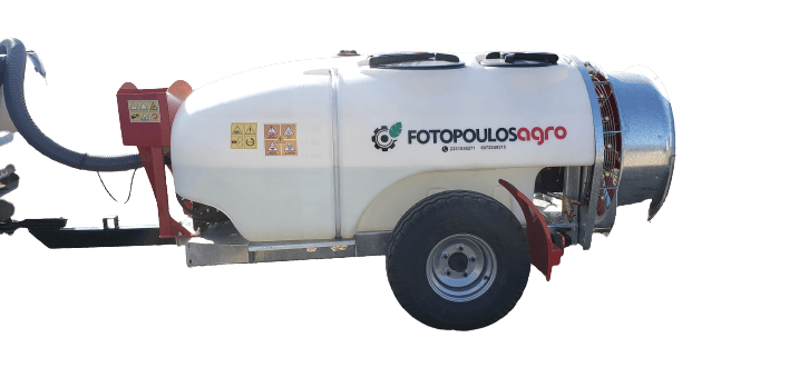 Ψεκαστικό συρόμενο με σασί γαλβανισμένο με τουρμπίνα γαλβανισμένη και βυτίο άσπρο πολυαιθυλενίου ενισχυμένης κατασκευής 1000L.