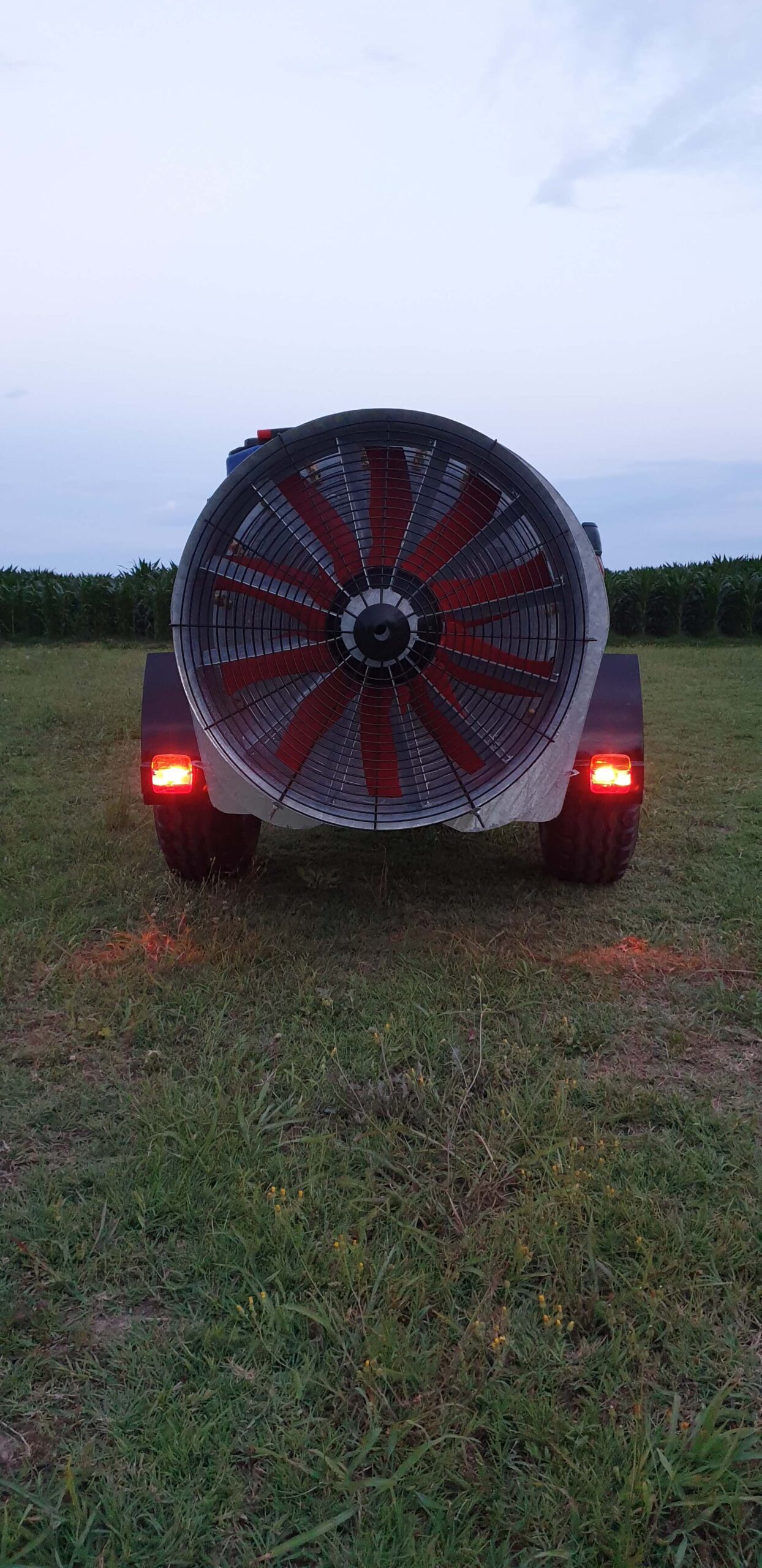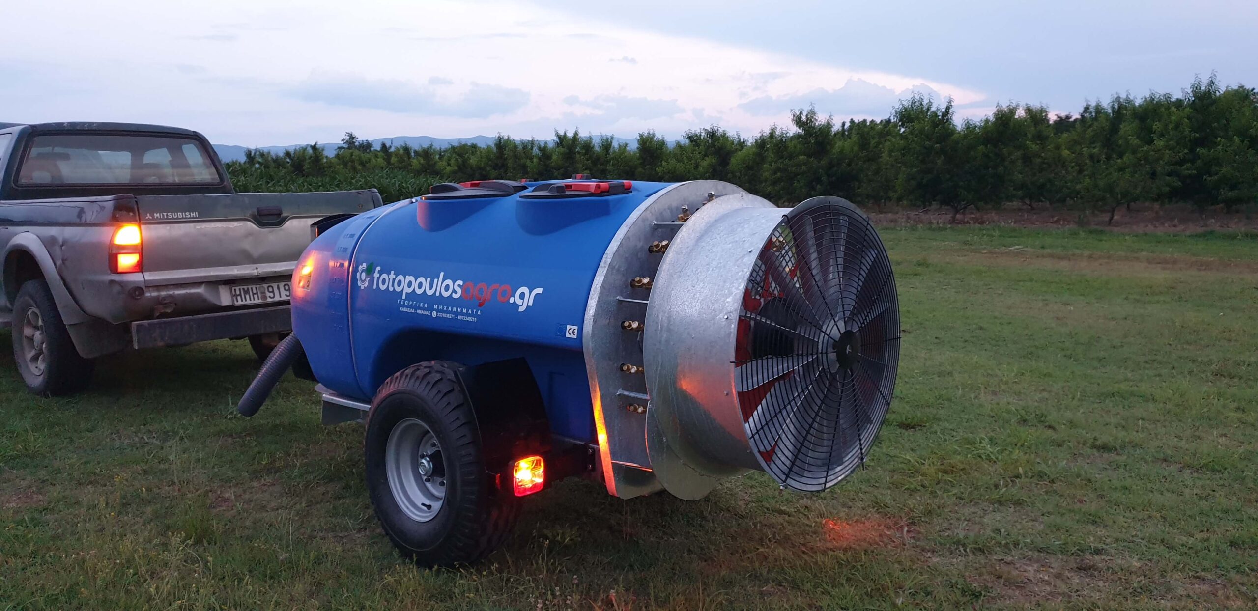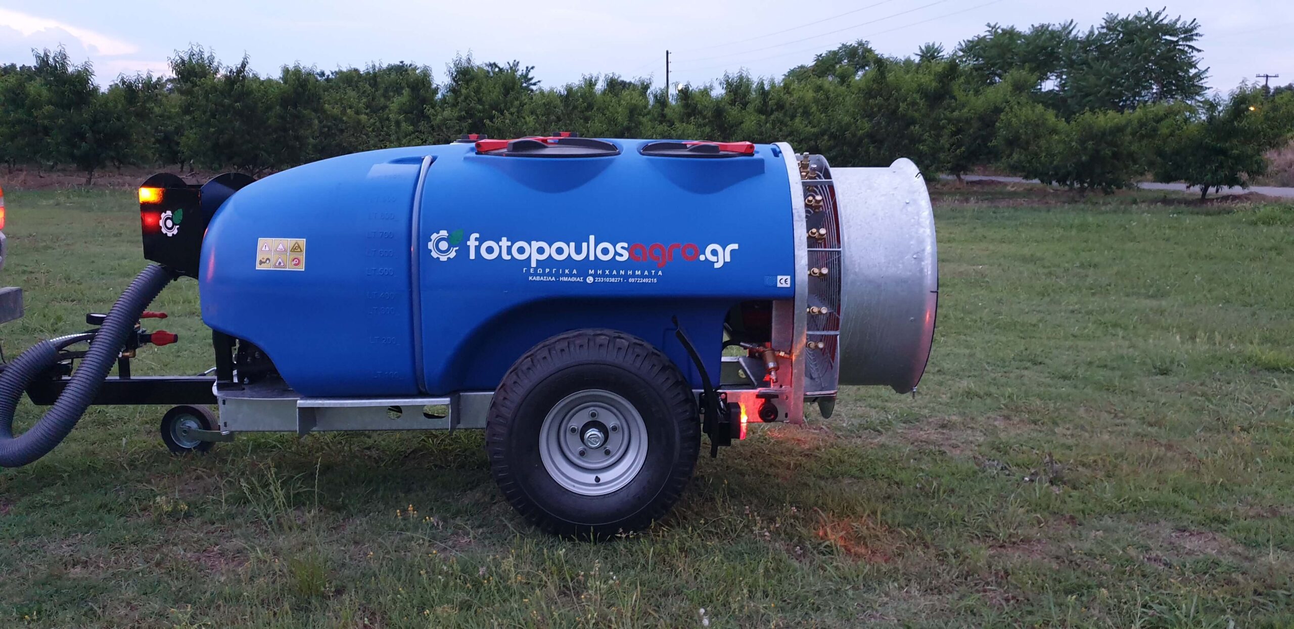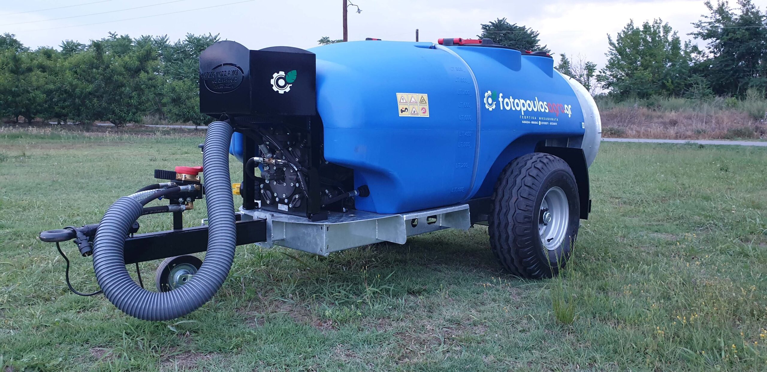 Ψεκαστικό συρόμενο με σασί γαλβανισμένο με τουρμπίνα γαλβανισμένη και βυτίο άσπρο πολυαιθυλενίου ενισχυμένης κατασκευής 1000L.