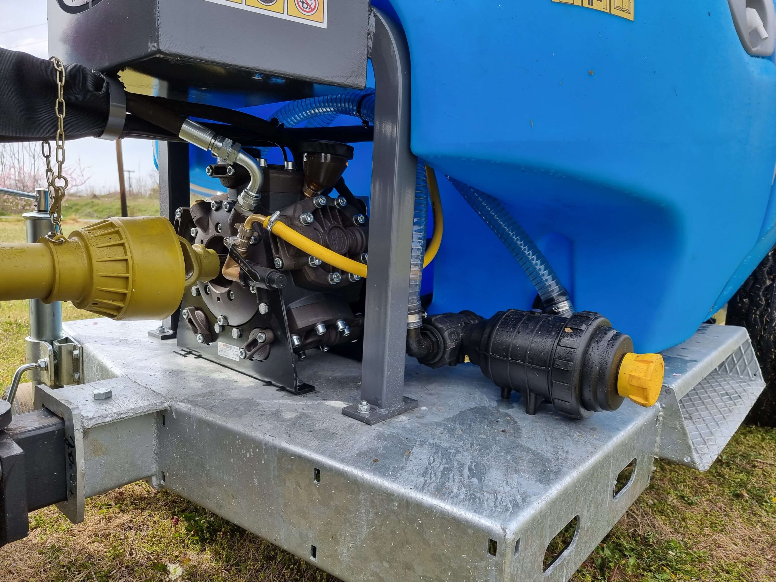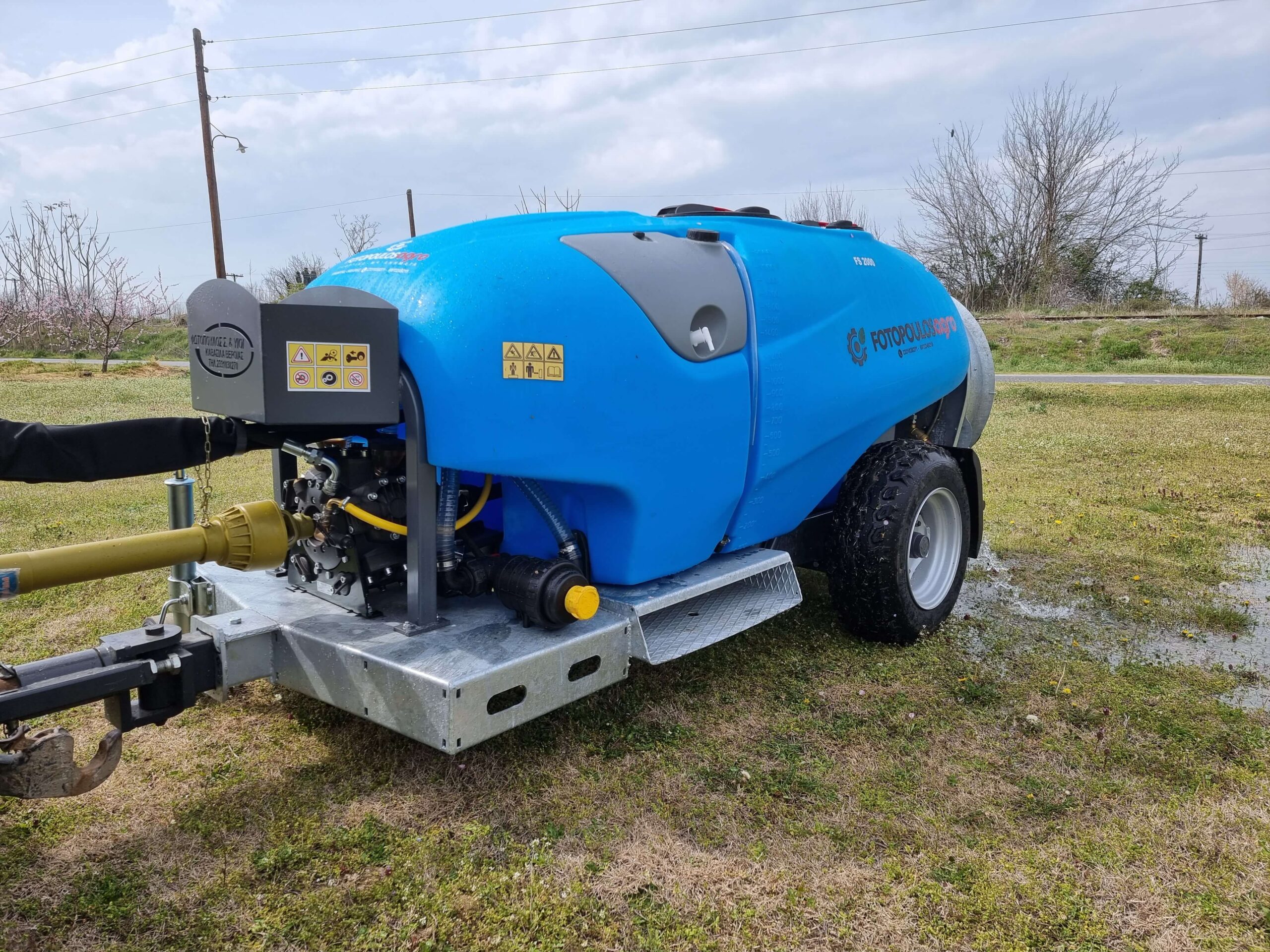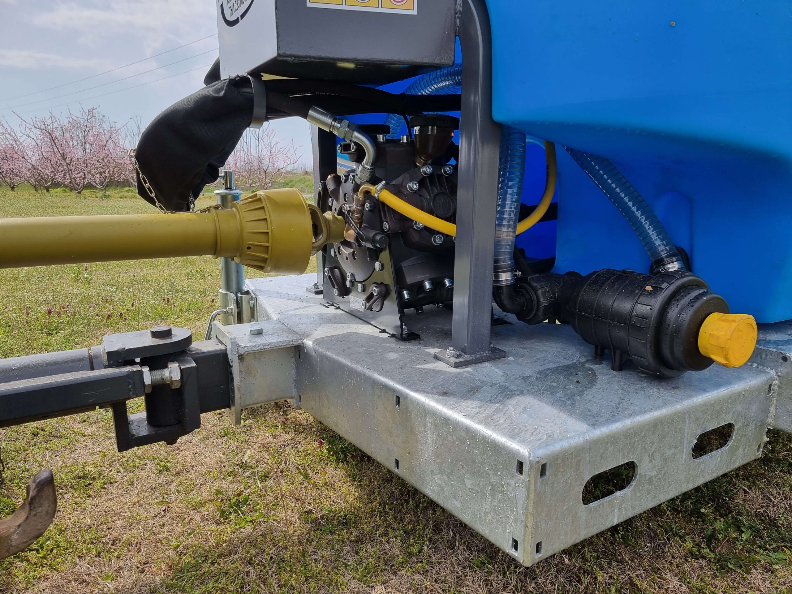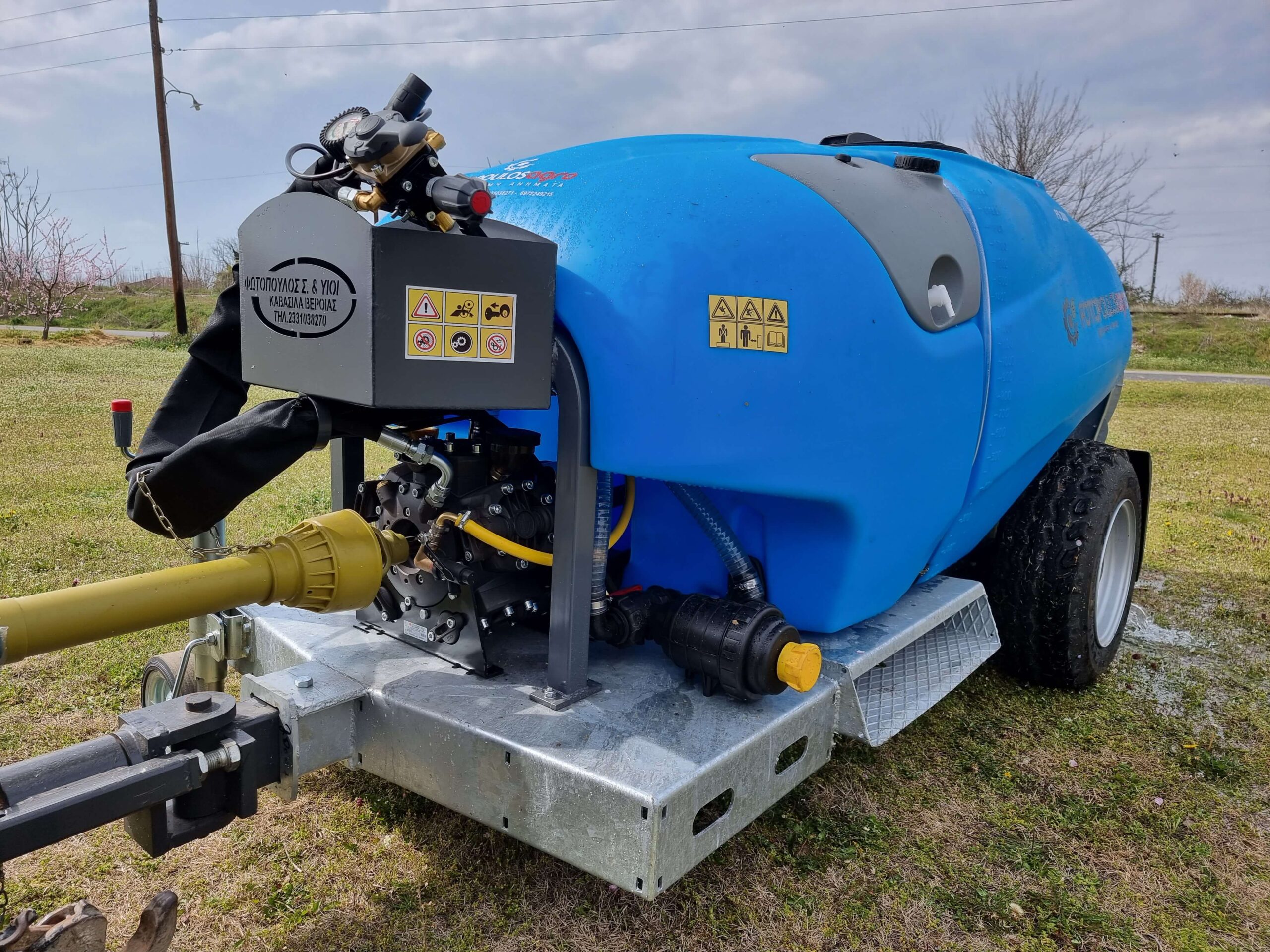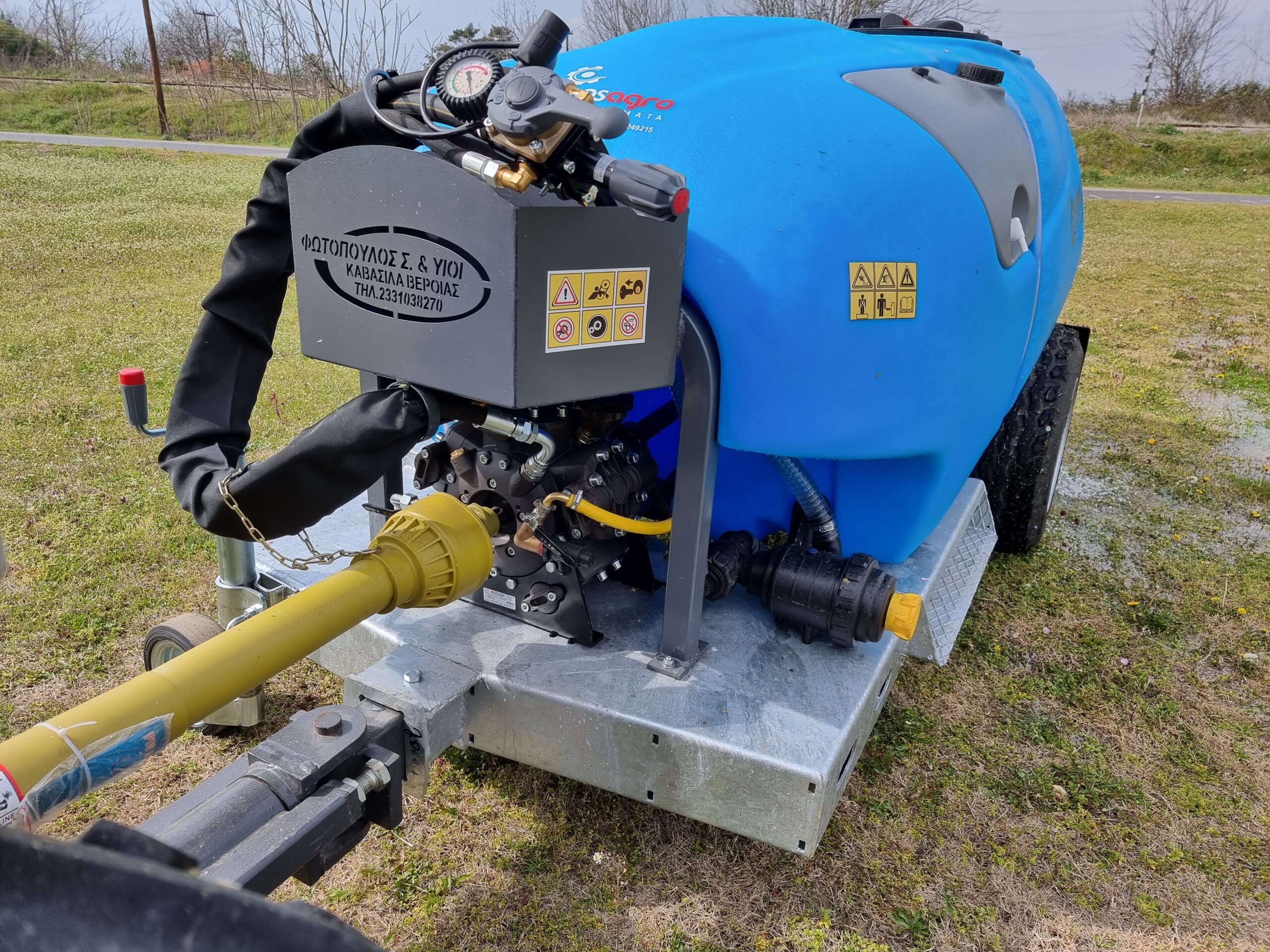 Ψεκαστικό συρόμενο με σασί γαλβανισμένο με τουρμπίνα γαλβανισμένη και βυτίο πολυαιθυλενίου για 3PZ ενισχυμένης κατασκευής 2000L.