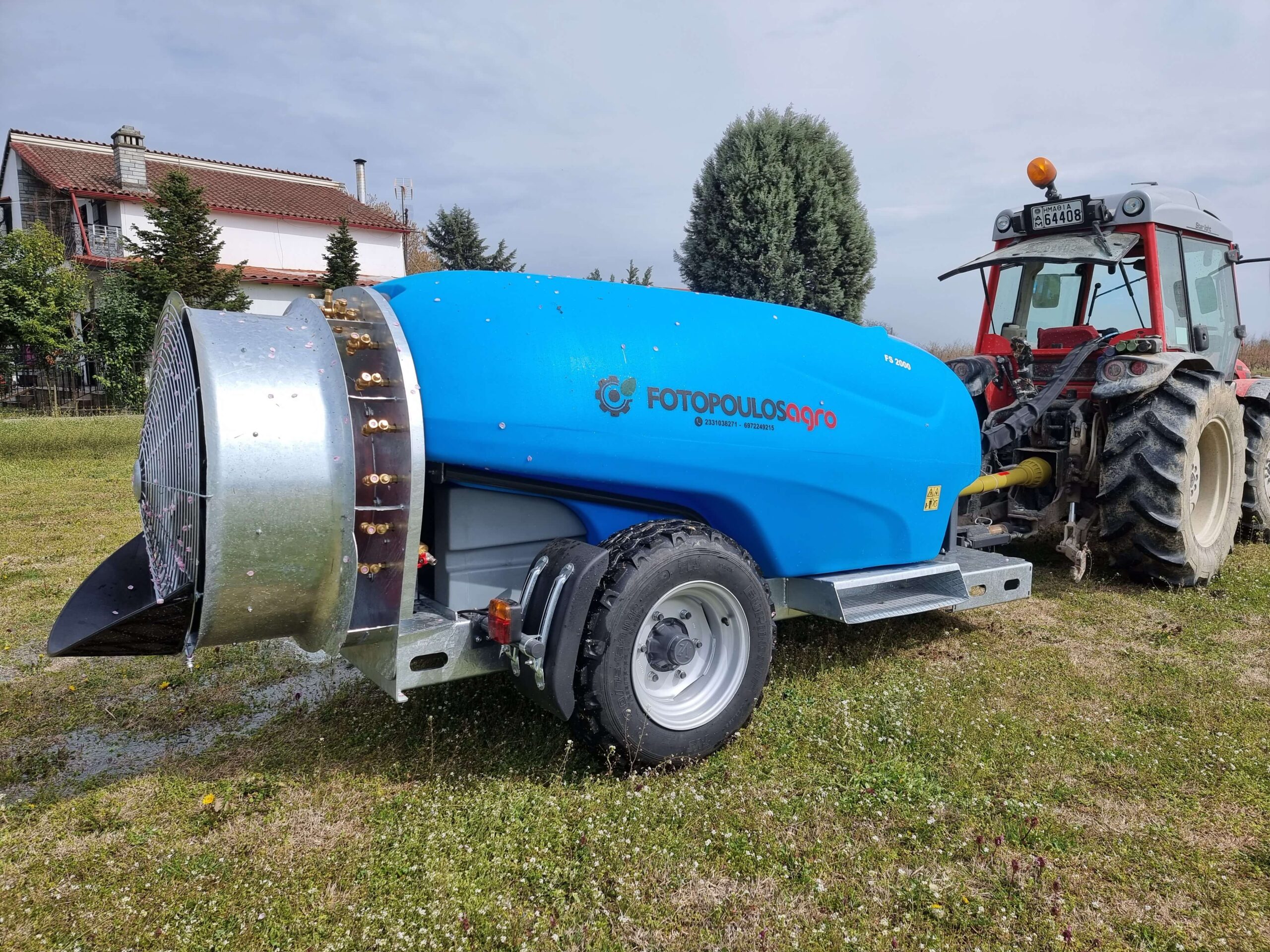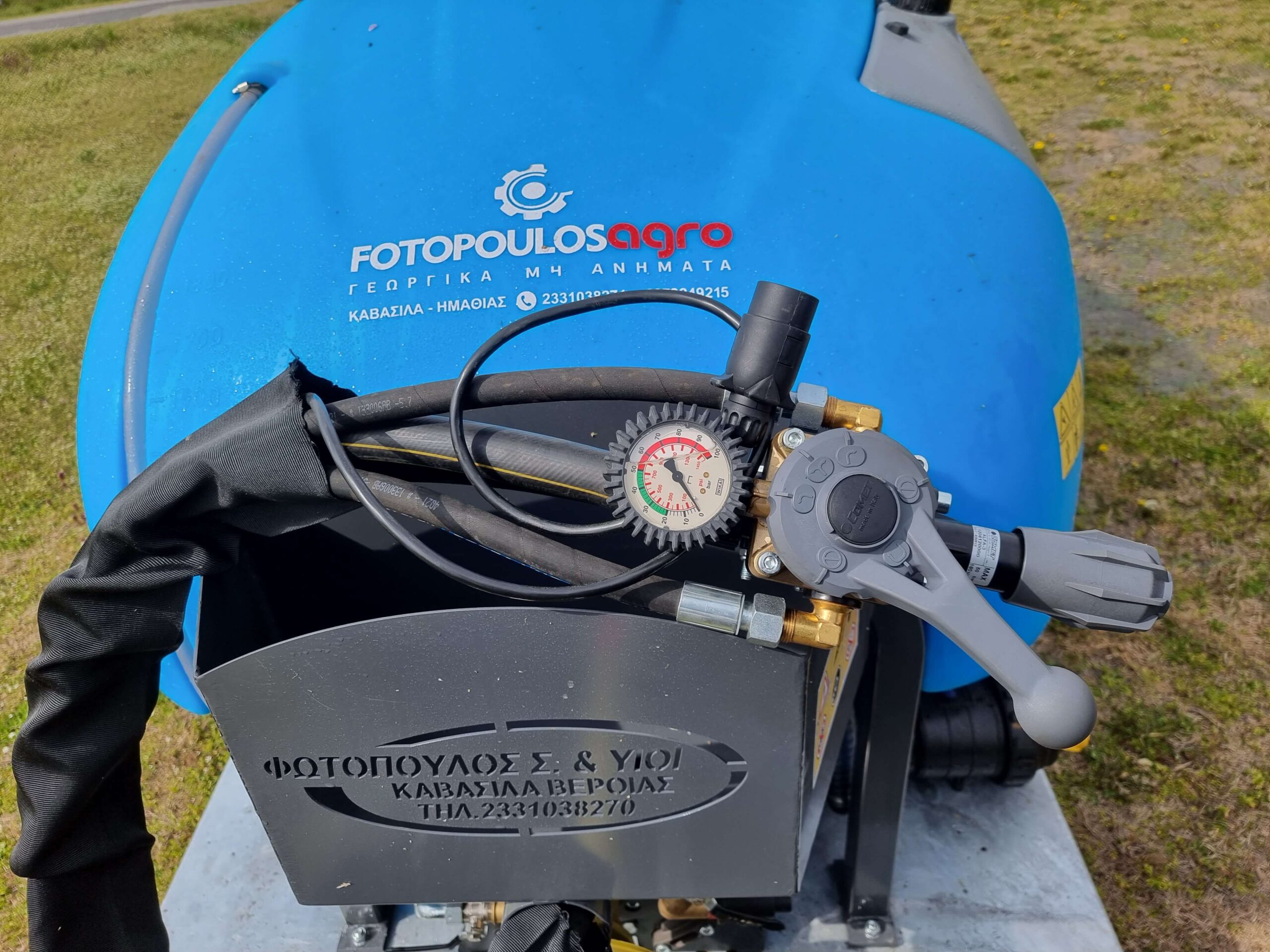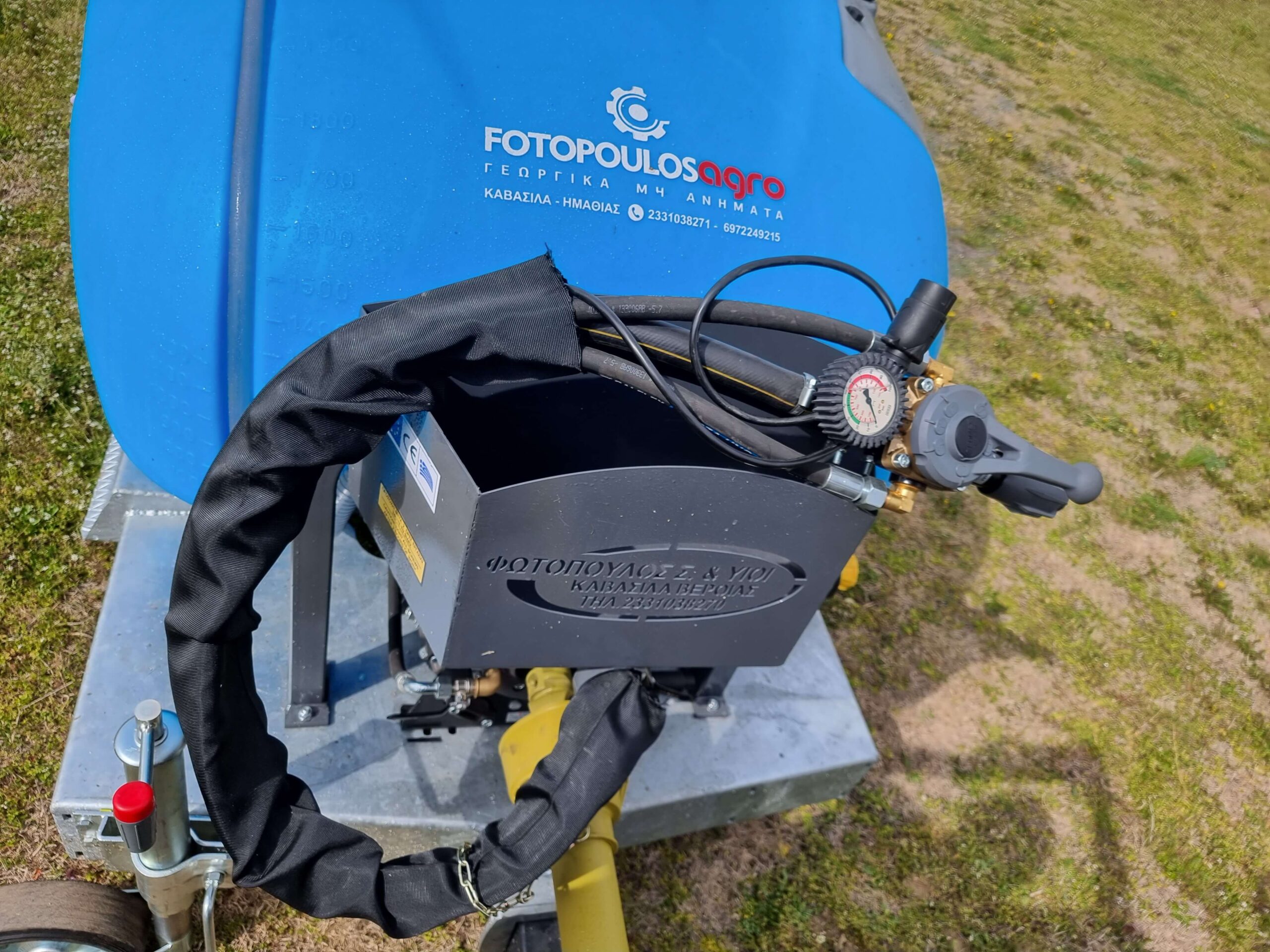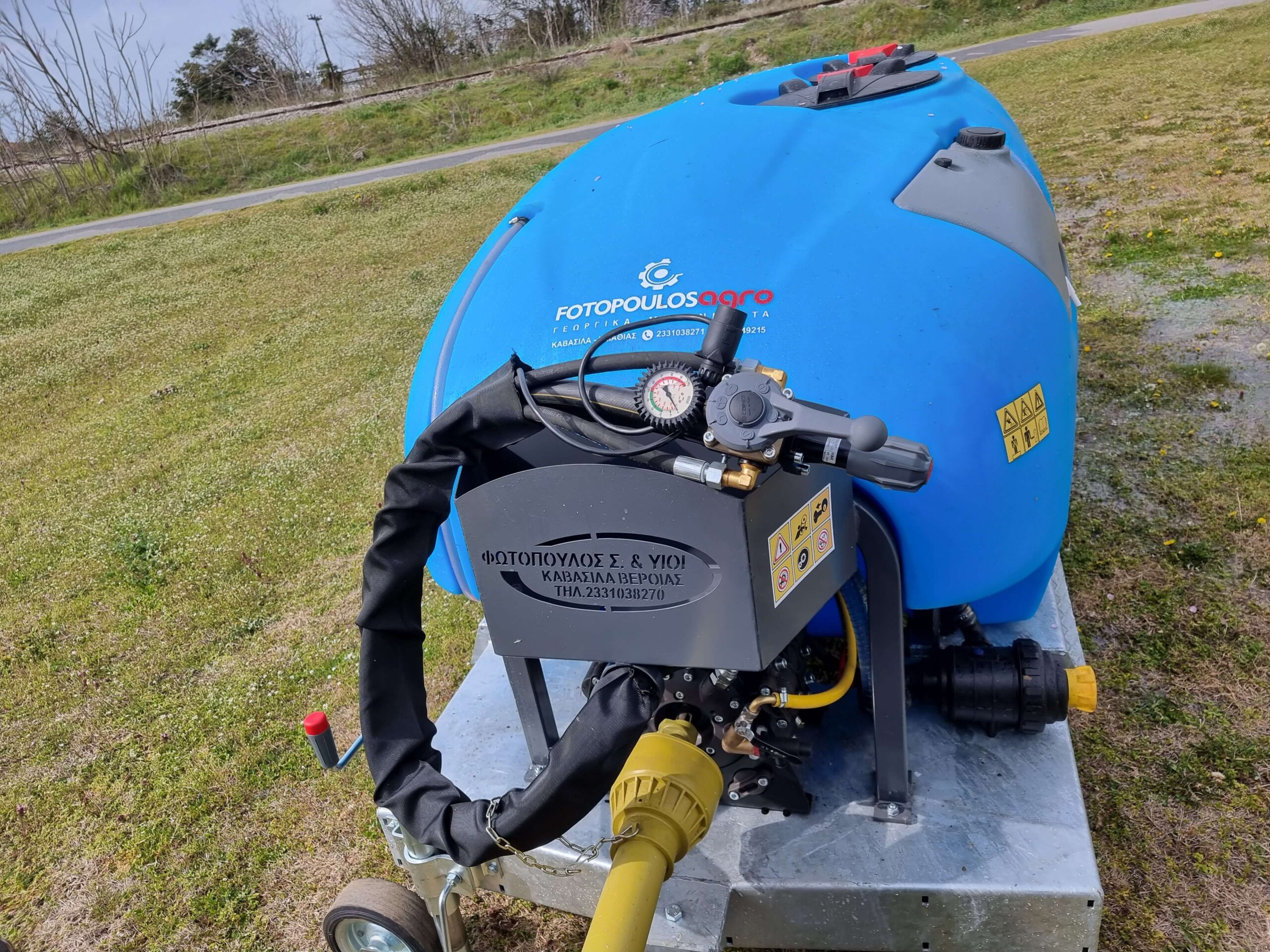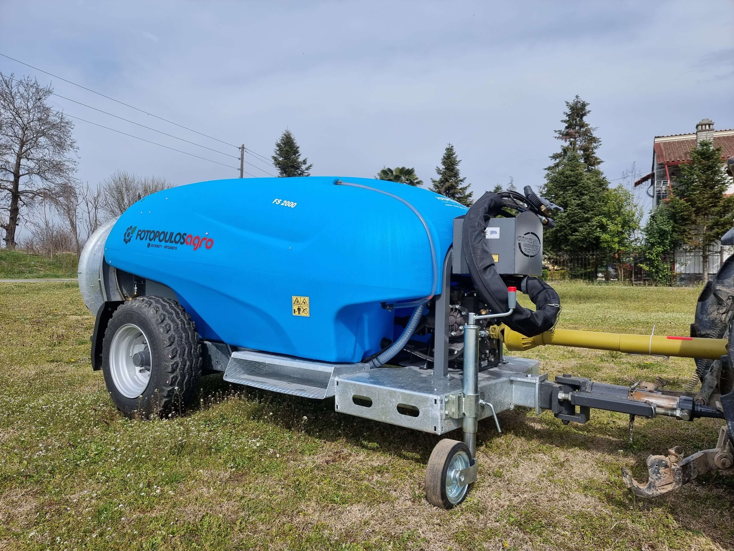 Ψεκαστικό συρόμενο με σασί γαλβανισμένο με τουρμπίνα γαλβανισμένη και βυτίο πολυαιθυλενίου για 3PZ ενισχυμένης κατασκευής 2000L.